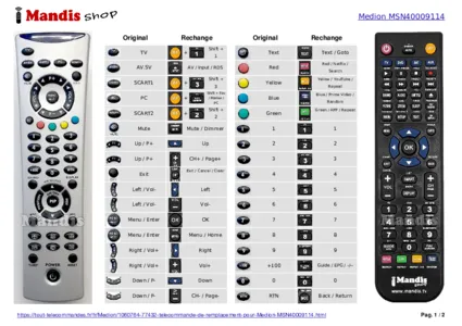 Cette télécommande remplace entièrement votre MD30132 et offre toutes les fonctions de l'originale.