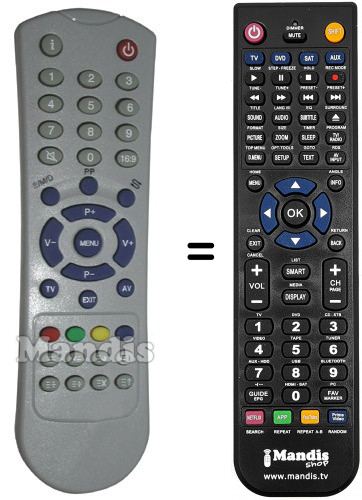 Télécommande qui remplace celle d'origine car elle possède les mêmes fonctions.