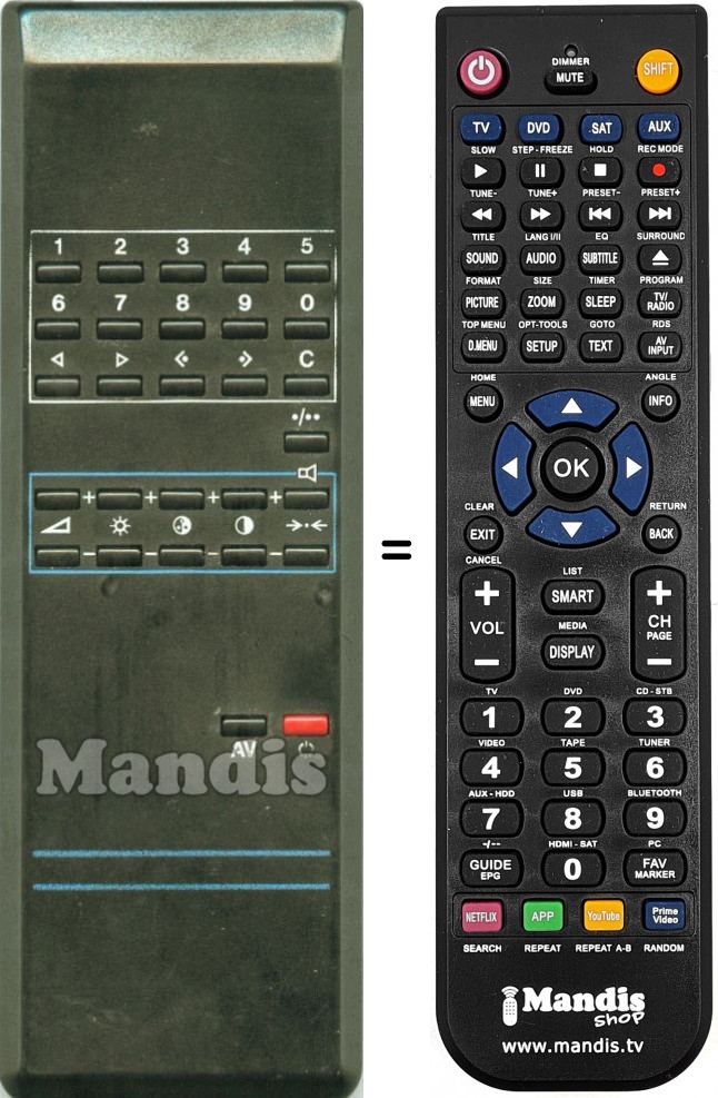 Télécommande qui remplace celle d'origine car elle possède les mêmes fonctions.