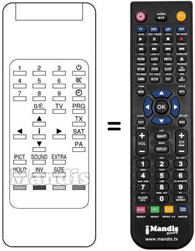 Télécommande qui remplace celle d'origine car elle possède les mêmes fonctions.