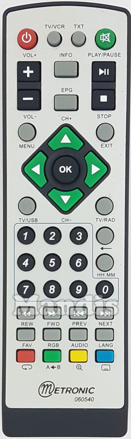Télécommande d'origine 060540 de la marque Metronic. Il s'agit d'un modèle de télécommande d'origine.