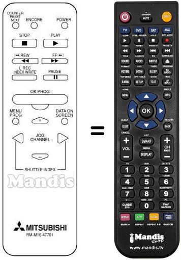 Télécommande qui remplace celle d'origine car elle possède les mêmes fonctions.