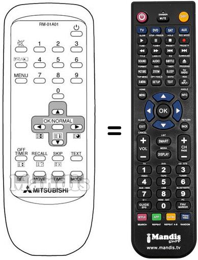 Télécommande qui remplace celle d'origine car elle possède les mêmes fonctions.
