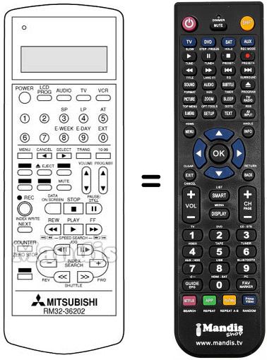 Télécommande qui remplace celle d'origine car elle possède les mêmes fonctions.