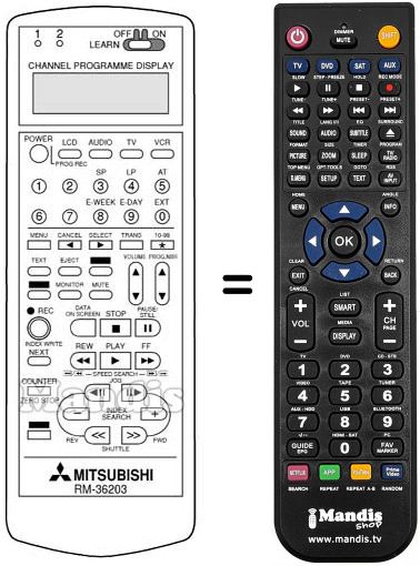 Télécommande qui remplace celle d'origine car elle possède les mêmes fonctions.