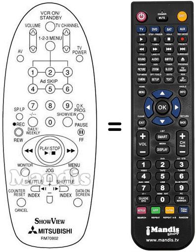 Télécommande qui remplace celle d'origine car elle possède les mêmes fonctions.