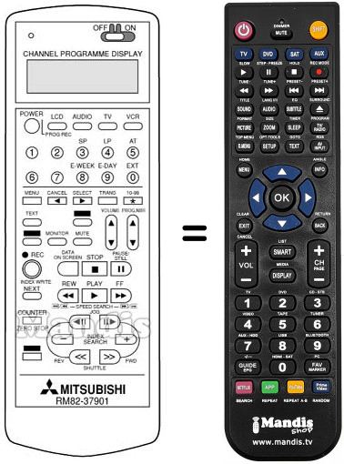 Télécommande qui remplace celle d'origine car elle possède les mêmes fonctions.