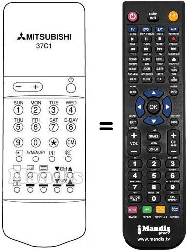 Télécommande qui remplace celle d'origine car elle possède les mêmes fonctions.