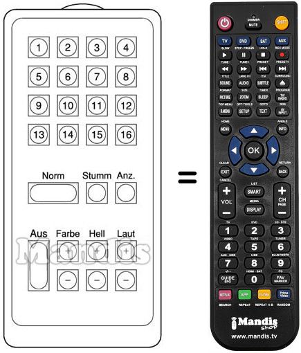 Télécommande qui remplace celle d'origine car elle possède les mêmes fonctions.