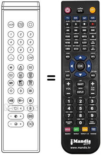 Télécommande qui remplace celle d'origine car elle possède les mêmes fonctions.