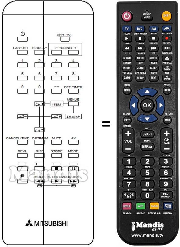 Télécommande qui remplace celle d'origine car elle possède les mêmes fonctions.