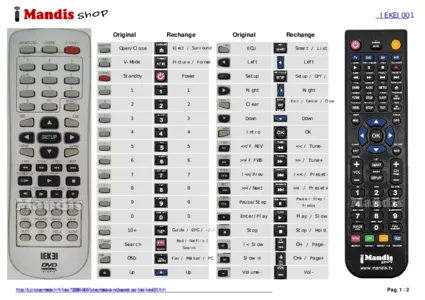 Un document est inclus pour vous aider à utiliser facilement la nouvelle télécommande, en indiquant la correspondance des boutons.