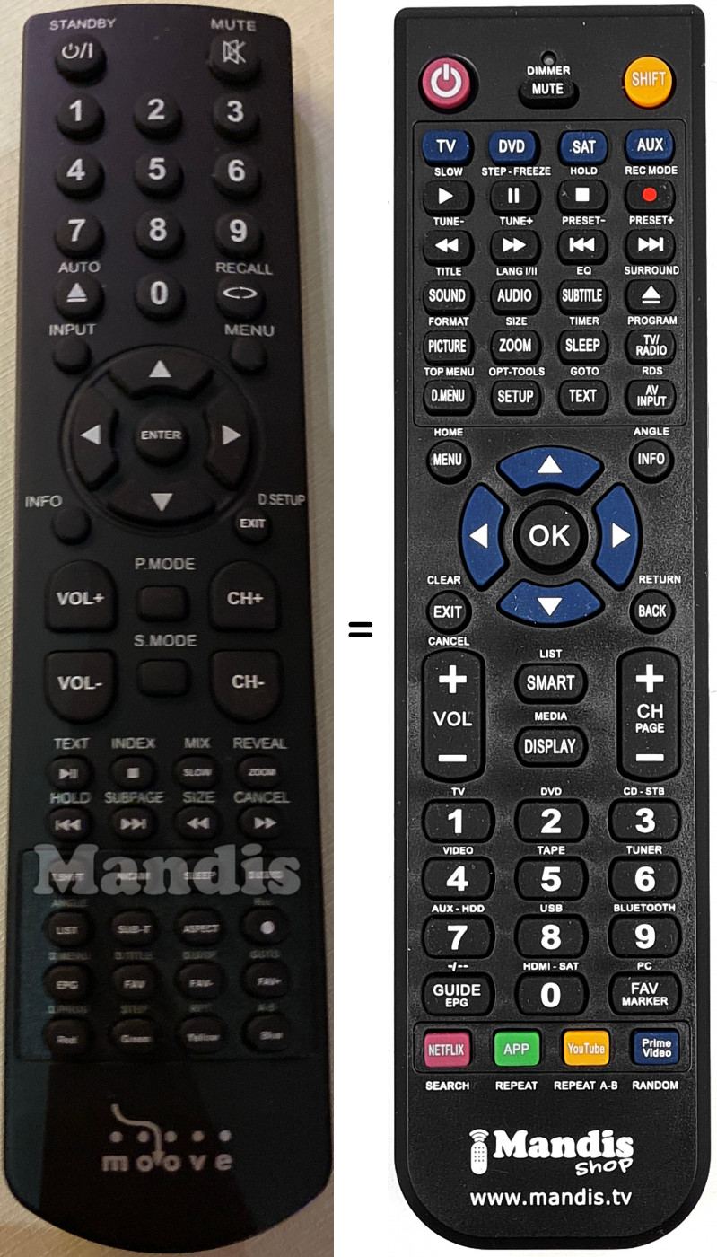 Télécommande qui remplace celle d'origine car elle possède les mêmes fonctions.