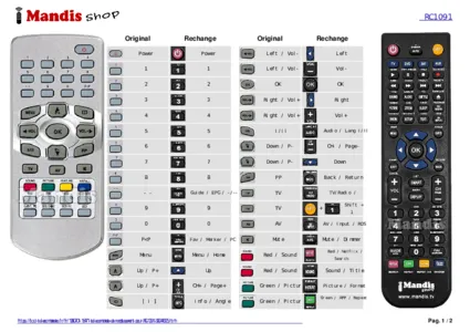 Un document est inclus pour vous aider à utiliser facilement la nouvelle télécommande, en indiquant la correspondance des boutons.