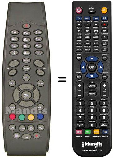 Télécommande qui remplace celle d'origine car elle possède les mêmes fonctions.