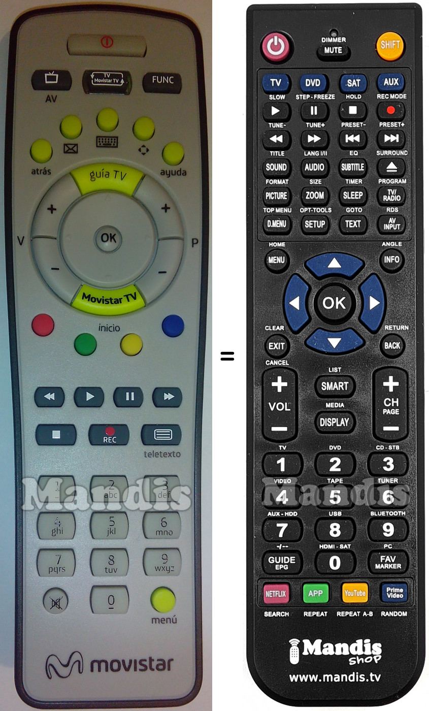 Cette télécommande remplace entièrement votre Movistar-1 et offre toutes les fonctions de l'originale.