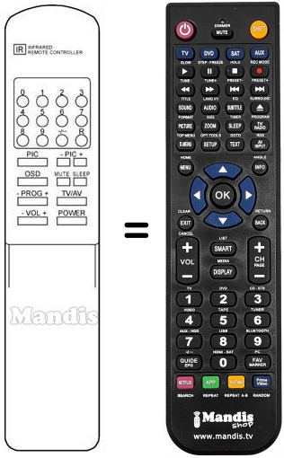 Télécommande qui remplace celle d'origine car elle possède les mêmes fonctions.