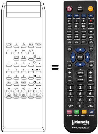 Télécommande qui remplace celle d'origine car elle possède les mêmes fonctions.