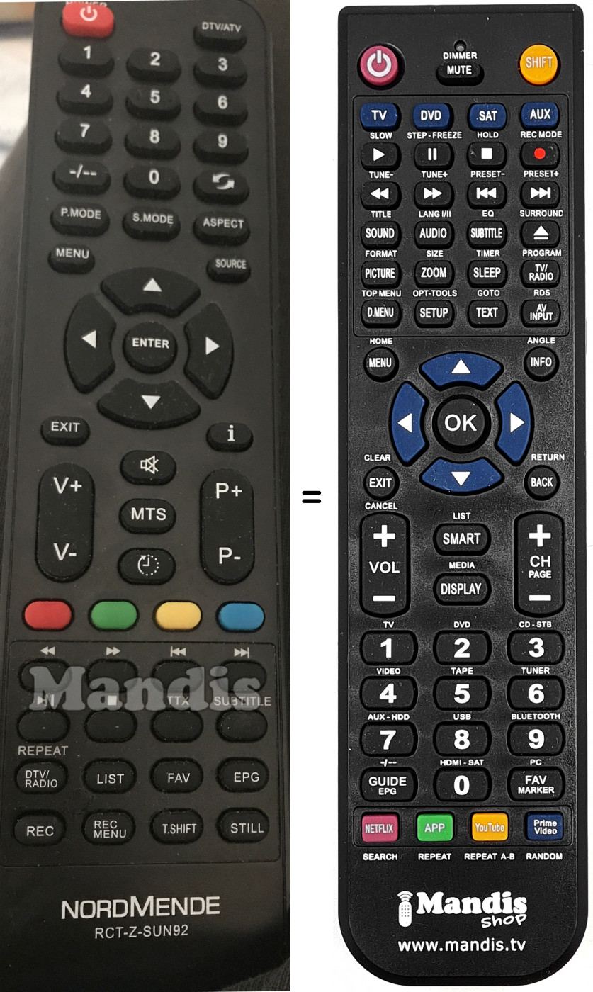 Télécommande qui remplace celle d'origine car elle possède les mêmes fonctions.