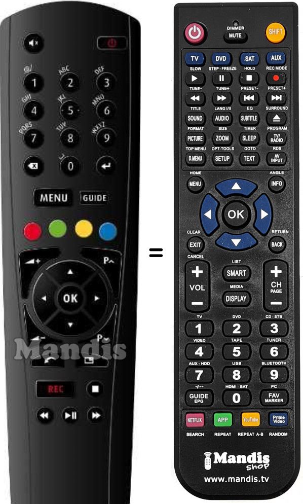 Il ne s'agit pas d'une télécommande universelle mais d'une télécommande qui remplace celle d'origine.