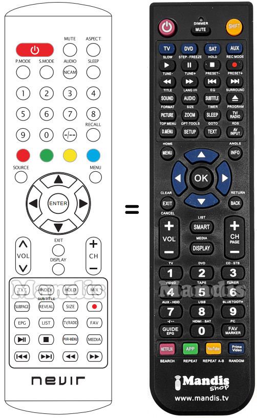 Cette télécommande remplace entièrement votre NVR7059TTG19B et offre toutes les fonctions de l'originale.