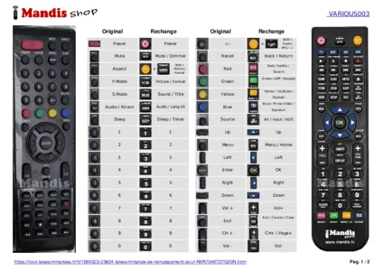 Un document est inclus pour vous aider à utiliser facilement la nouvelle télécommande, en indiquant la correspondance des boutons.