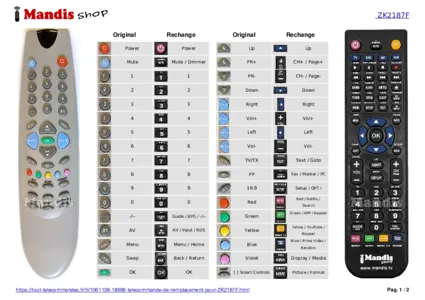 Un document est inclus pour vous aider à utiliser facilement la nouvelle télécommande, en indiquant la correspondance des boutons.