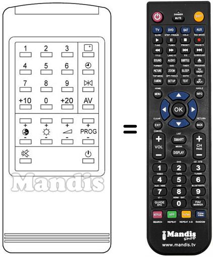 Télécommande qui remplace celle d'origine car elle possède les mêmes fonctions.
