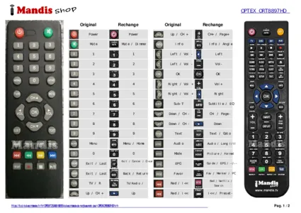 Cette télécommande remplace entièrement votre ORT8897HD et offre toutes les fonctions de l'originale.
