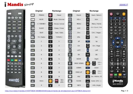 Un document est inclus pour vous aider à utiliser facilement la nouvelle télécommande, en indiquant la correspondance des boutons.