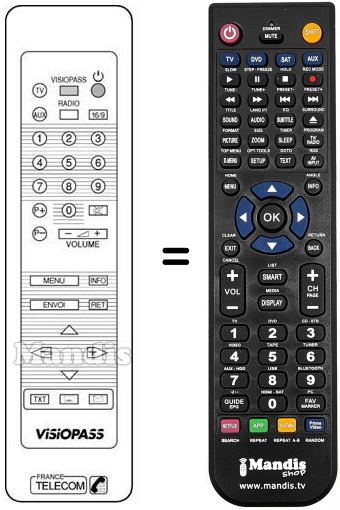 Télécommande qui remplace celle d'origine car elle possède les mêmes fonctions.