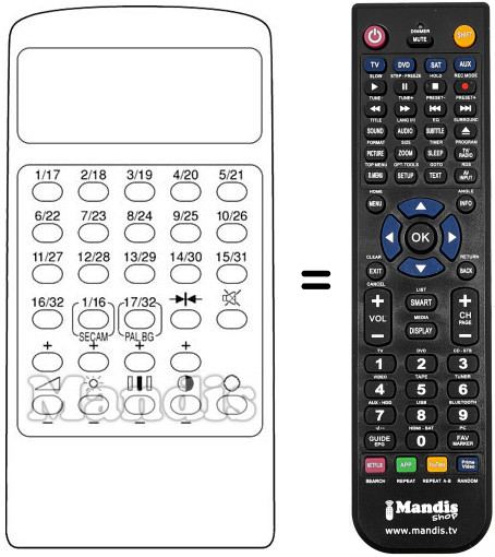 Télécommande qui remplace la télécommande d'origine MULTIMAT 832 car elle possède les mêmes fonctions.