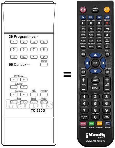 Télécommande qui remplace celle d'origine car elle possède les mêmes fonctions.