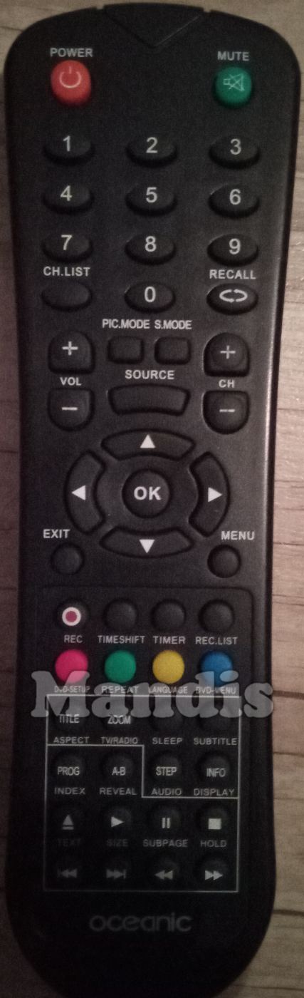Télécommande d'origine OCEALED215DVD2 pour téléviseurs de la marque Oceanic. Il s'agit d'un modèle de télécommande d'origine.