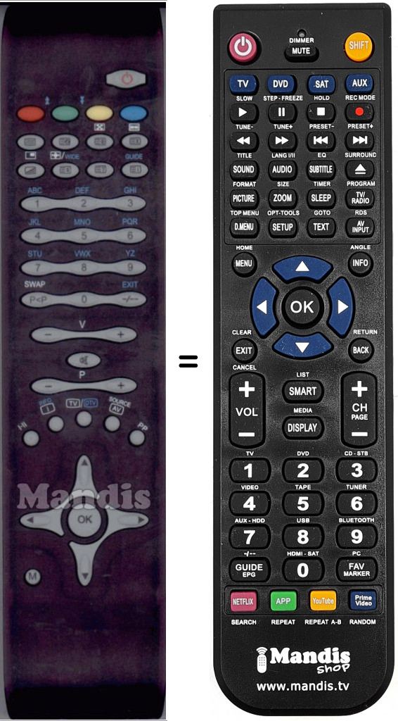 Télécommande qui remplace celle d'origine car elle possède les mêmes fonctions.