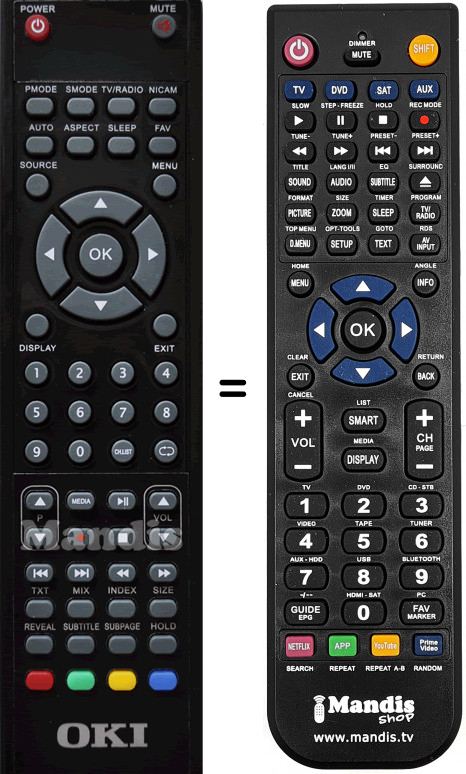 Télécommande qui remplace celle d'origine car elle possède les mêmes fonctions.