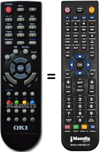 Télécommande qui remplace celle d'origine car elle possède les mêmes fonctions.