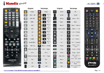Cette télécommande remplace entièrement votre RC-896M et offre toutes les fonctions de l'originale.