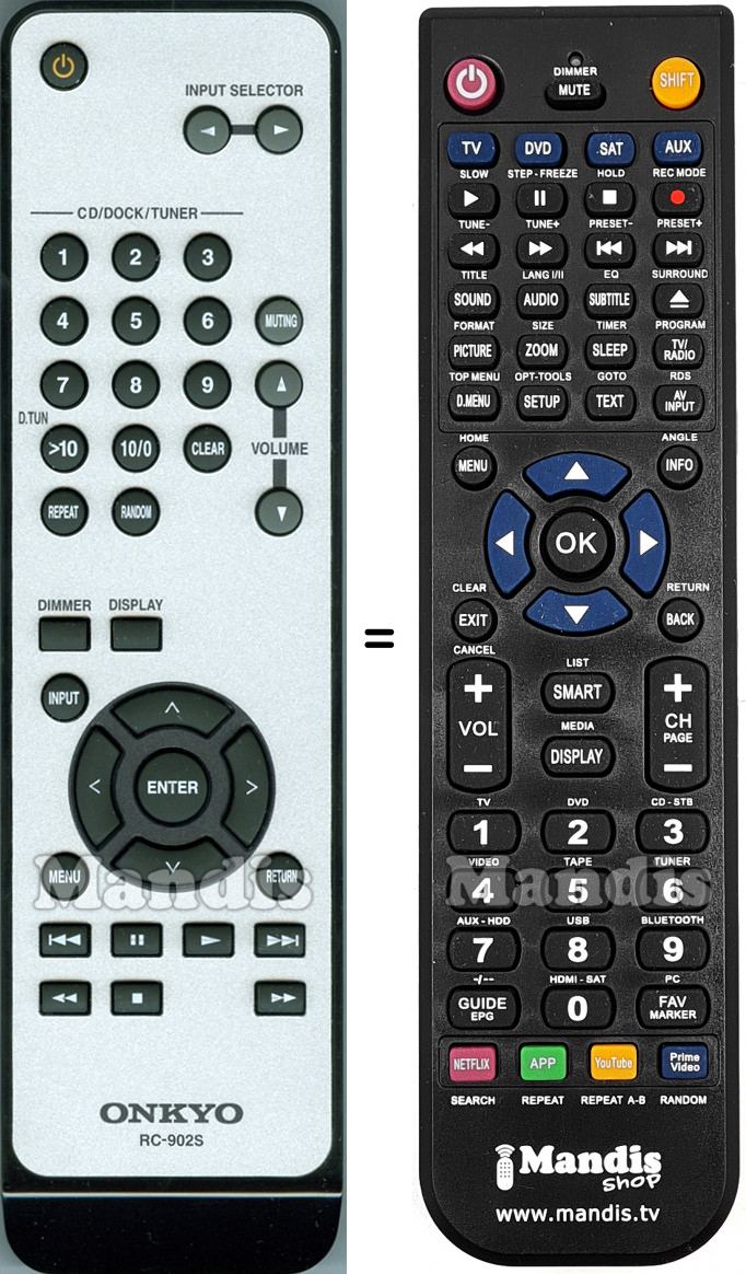 Cette télécommande remplace entièrement votre RC-902S et offre toutes les fonctions de l'originale.