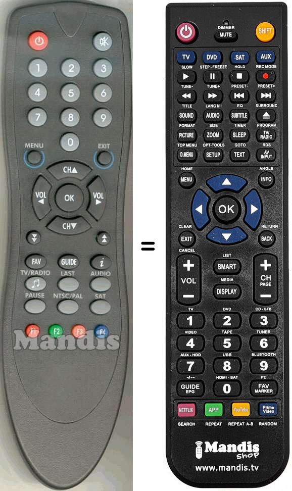 Télécommande qui remplace la télécommande d'origine DVB3001R car elle possède les mêmes fonctions.
