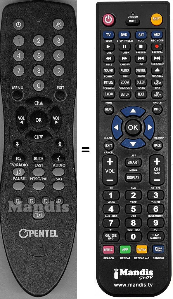 Télécommande qui remplace la télécommande d'origine Opentel001 car elle possède les mêmes fonctions.