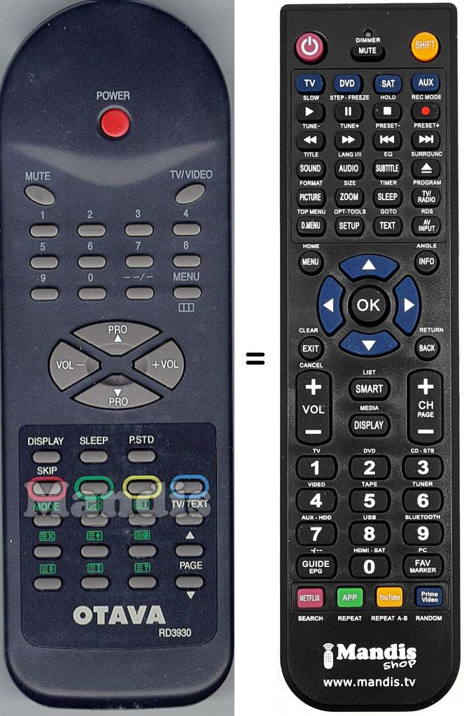Télécommande qui remplace la télécommande d'origine RD3930 car elle possède les mêmes fonctions.