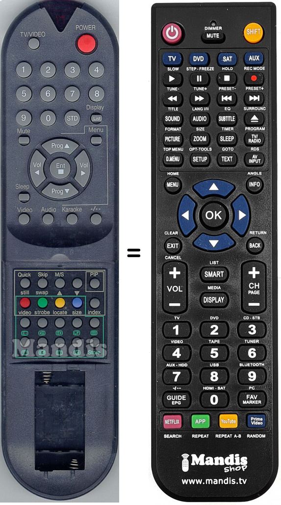 Télécommande qui remplace celle d'origine car elle possède les mêmes fonctions.
