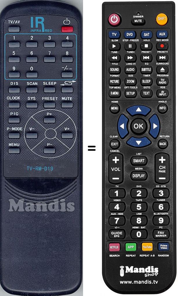 Télécommande qui remplace celle d'origine car elle possède les mêmes fonctions.