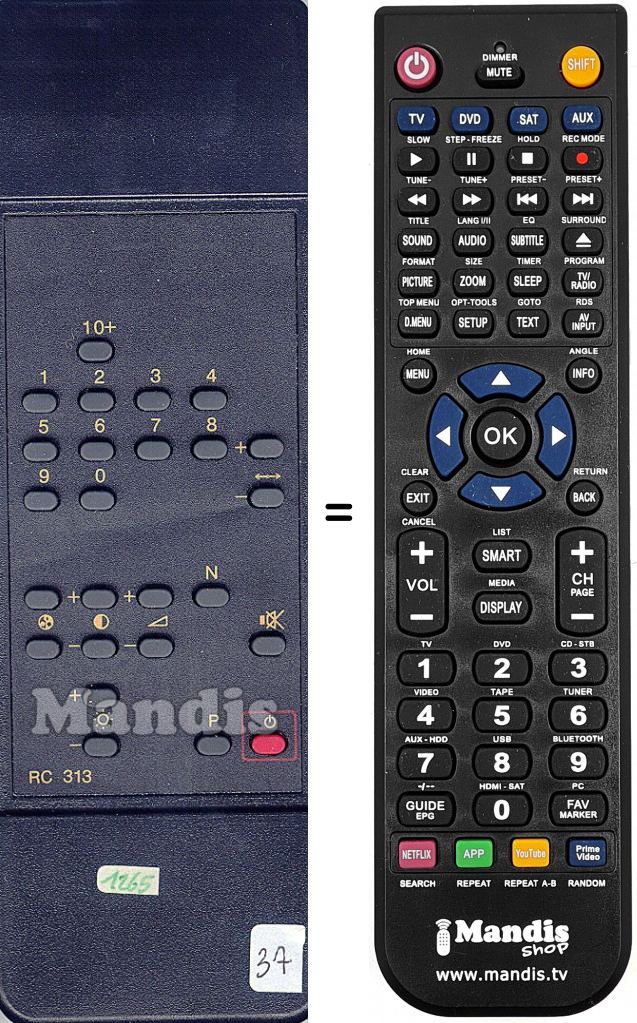Télécommande qui remplace celle d'origine car elle possède les mêmes fonctions.
