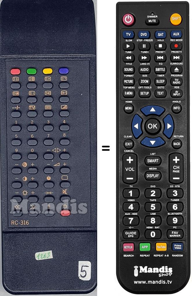 Télécommande qui remplace celle d'origine car elle possède les mêmes fonctions.