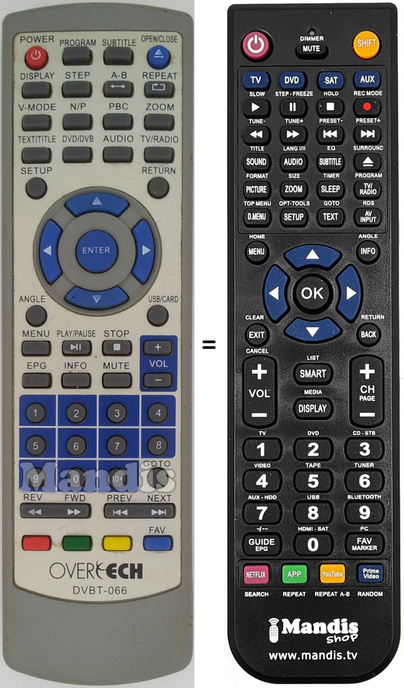 Télécommande qui remplace celle d'origine car elle possède les mêmes fonctions.