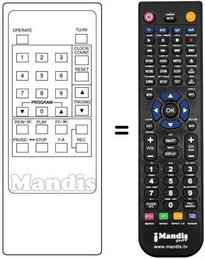 Télécommande qui remplace celle d'origine car elle possède les mêmes fonctions.