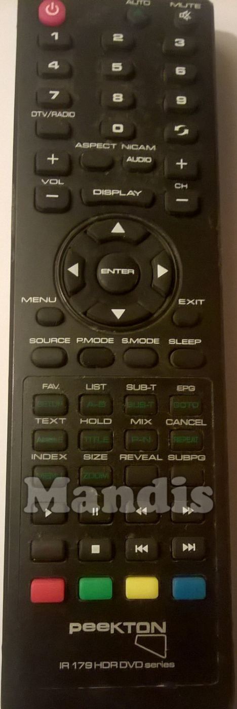 Télécommande d'origine DVD series (IR 179HDR) pour téléviseurs de la marque PEEKTON. Il s'agit d'un modèle de télécommande d'origine.