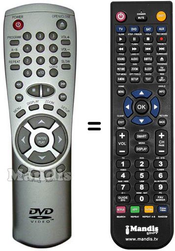 Télécommande qui remplace celle d'origine car elle possède les mêmes fonctions.